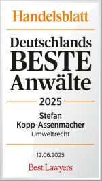 Rechtsanwalt Stefan Kopp-Assenmacher zählt auch 2025 zu den besten Anwälten Deutschlands im Umweltrecht. Der US-Verlag Best Lawyers hat ihn in Kooperation mit dem Handelsblatt erneut in seine renommierte Liste der führenden Rechtsberater im deutschsprachigen Raum aufgenommen.